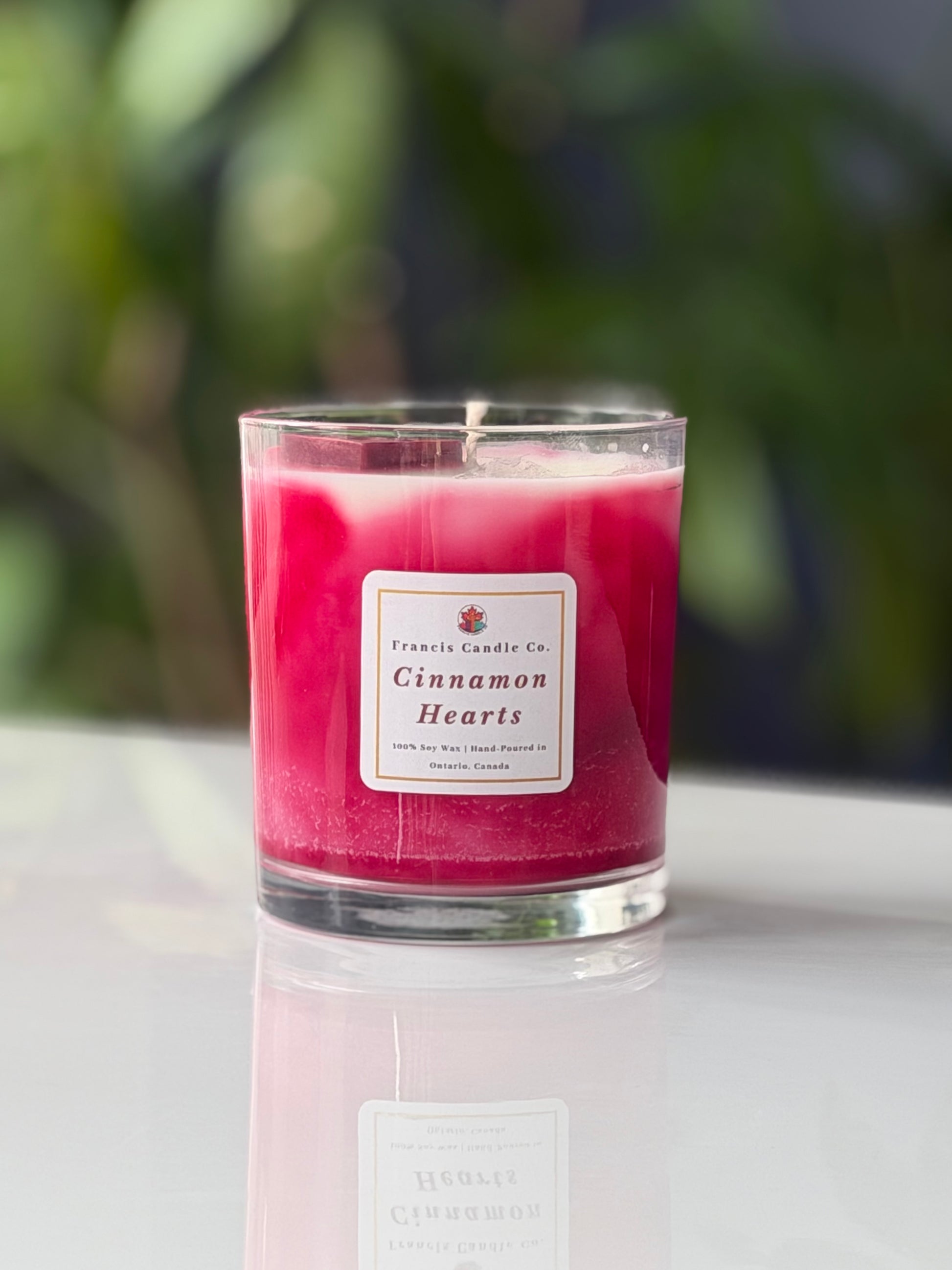 All of our candles are 100% soy wax and burn with a cotton wick for a cleaner burn.