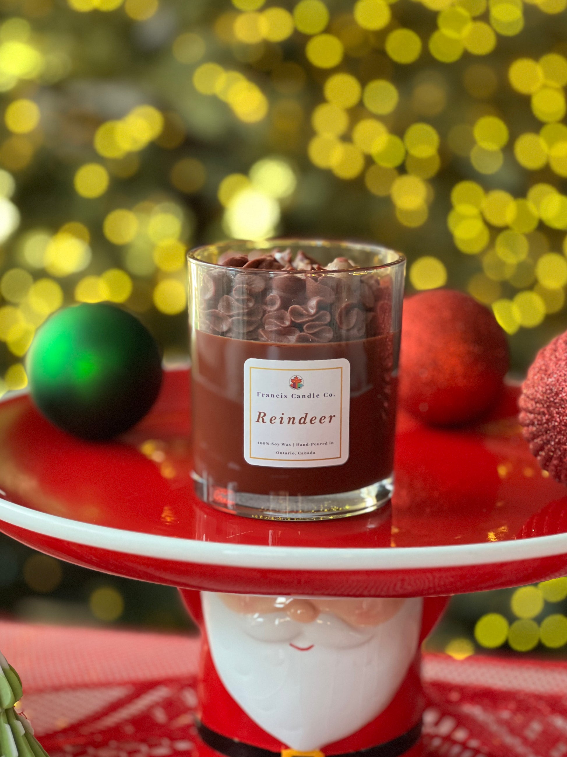 Illuminate your holiday décor with our Reindeer soy wax candle. Hand poured and topped with a charming hand painted soy wax reindeer. The blend of refreshing citrus, warm cedarwood, and earthy moss in our Classic Christmas scent, brings a truly natural and inviting aroma to any room.