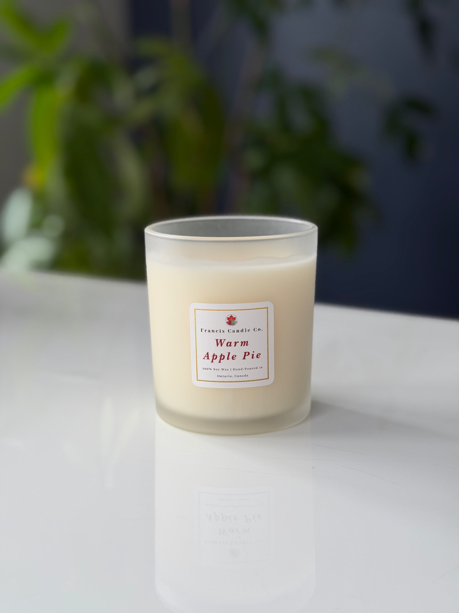 Warm Apple Pie soy wax candle offers a rich apple fragrance derived from natural soy wax, providing a cleaner burn with less soot compared to traditional paraffin candles. This candle enhances indoor air quality while delivering a comforting and nostalgic scent profile, ideal for creating a warm ambiance in any space.